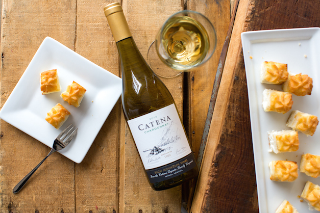 Honestly, the only thing that can improve the cheese puffs is a sip of Catena Mendoza Chardonnay 2013. Vin manager Jen Blair selected this wine because chardonnay pairs well with cheese and pastry. “This wine goes through secondary fermentation which softens it and gives toasty, round and creamy notes,” Jen says. “This complements nicely the flavors of the rich, savory puffs. Additionally, this wine has just enough acid to cleanse your palate to keep the pairing from feeling heavy.”