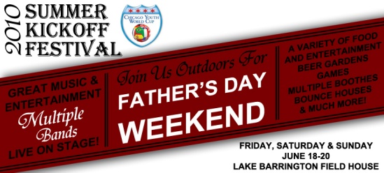 A weekend packed with summer fun and World Cup-themed soccer is planned at the Lake Barrington Field House today and tomorrow. They’re throwing a huge Summer Kickoff Festival to celebrate Father’s Day, the first day of summer and the first annual “Chicago Youth World Cup” tournament.