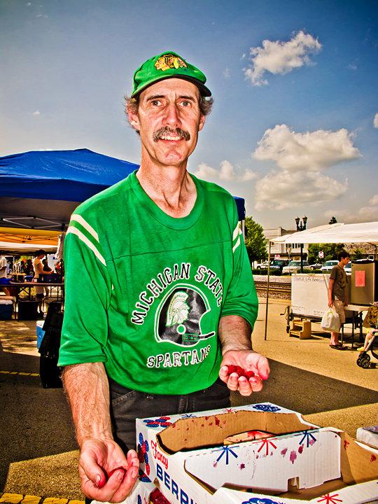 It is a gorgeous day today! If you want to get outside and pick up some of the freshest produce in town, stop by and see Farmer Wayne Miller at the Barrington Farmers Market this afternoon. He and his crew have been at the Farmers Market every Thursday this summer from their farm in Coloma, Michigan. He recently struck a pose for Barrington photographer, Anthony Tortoriello.