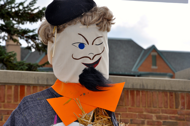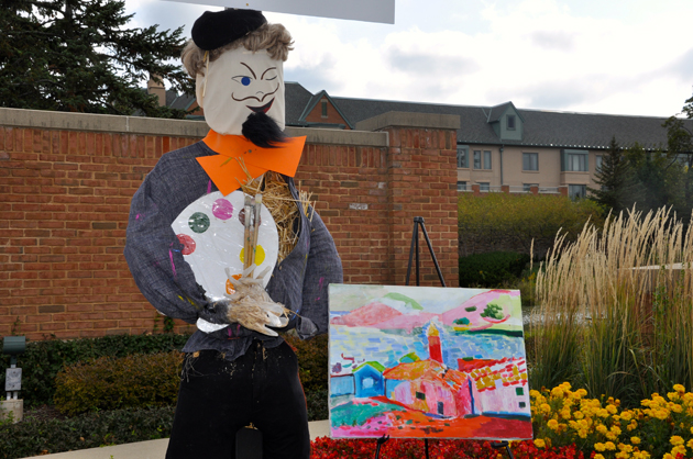 With scarecrows decorating businesses throughout Barrington, we can’t help but reintroduce Spot the Scarecrow, the fall version of our weekly mystery photo contest here at 365Barrington.com. The first photo of our series is one of the many straw creations designed for the Village of Barrington’s annual Scarecrow Contest. This guy is dressed up as an artist and you’ll spot him if you’re whizzing by on a pretty busy street in town. Can you guess where he is?