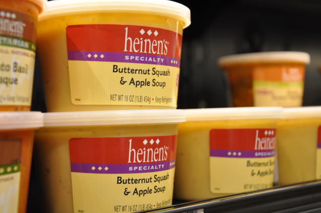Heinen’s always has five soups hot and ready plus others prepackaged for reheating, like Chili and Chicken Noodle which are staples. For the fall, expect the others to be things like Pumpkin Bisque, which is rich and velvety with the perfect amount of spice, Quinoa Chili, Chicken Paprikash plus Buttrenut Squash & Apple Soup.