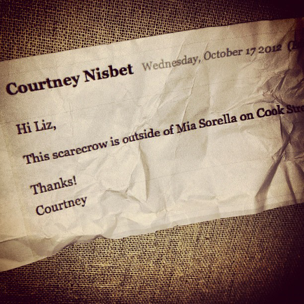 Now to our new mystery photo. If you know where we spotted the 3 Reasons scarecrow, here’s how to enter the contest…