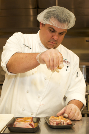 Or, I’ll pound it really thin, coat it with an egg wash and bread it with a Parmesan crust to make a lamb chop melanase, which sells really well in our prepared foods case.