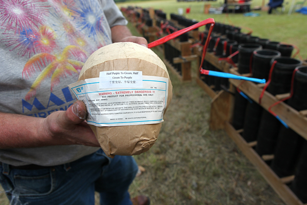 Mad Bomber pyrotechnician, Kevin Murphy, says the ball shells burst into a very symmetrical, round break.