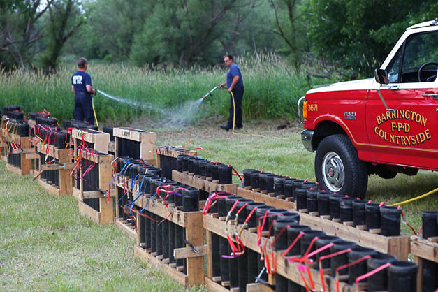 Stephanie brought us to meet Barrington Fire Prevention Officer, Jim Feit, and the crew from Mad Bomber Fireworks. We were treated to a behind-the-scenes look as they were setting up the fireworks on a family owned parcel of land behind the Morgan Stanley Smith Barney building on Lake Cook Road.