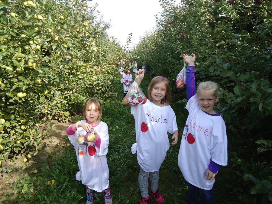 We also study apples in September focusing on the life cycle of the apple while doing various science and math projects relating to apples. To tie our unit into the community we take a walking field trip to visit the Barrington Farmer’s Market, where we meet farmers who describe the life cycle of the apple to the children and allow them to taste various apples and apple products. To further allow the children to understand apples and where they come from we take a field trip by bus to an apple orchard, which allows the children to pick their own apples! It is such a fun way to end our unit of study on apples. We do all of this while beginning to learn our Jolly Phonics sounds and starting our Handwriting without Tears curriculum.