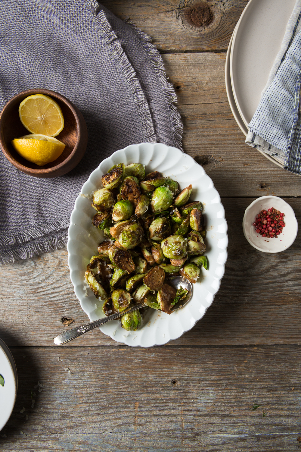 You can choose from a myriad of side dishes to accompany steak. Today I served pan seared Brussels sprouts. It’s simple! I clean and cut them in half then steam them in the microwave for 5 minutes to par cook them then sear them in a hot pan with a bit of olive oil. When lightly browned I add a splash of soy sauce and crushed garlic. Toss and serve. Serve with grated parmesan cheese.