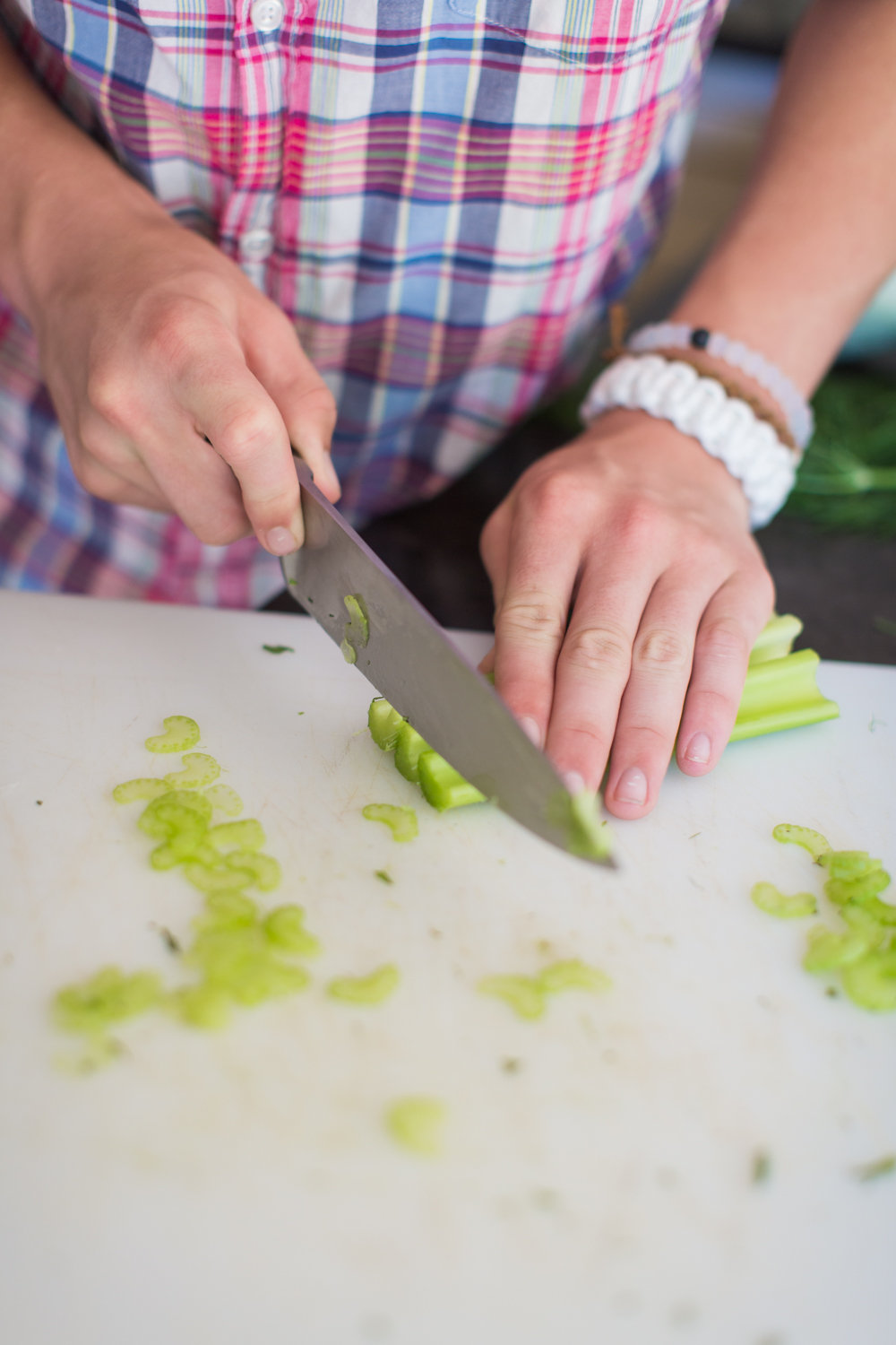 - 3 celery stalks, thinly sliced diagonally, plus 1/4 cup loosely packed celery leaves