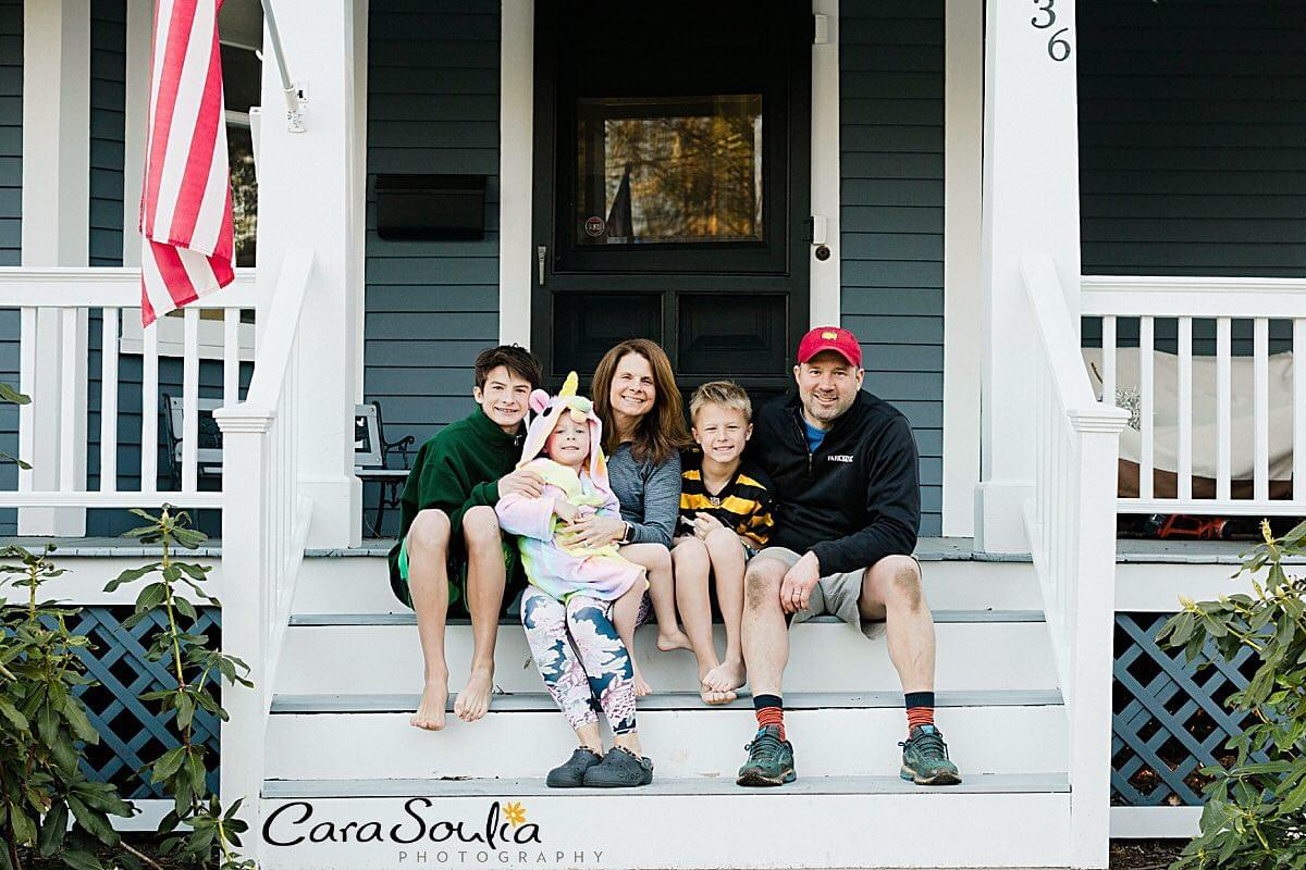 My friend from elementary school, Tricia Wajda, posted a photo of her family on their front porch in Massachusetts. One kiddo was wearing a unicorn robe and her husband was dirty from yard work. It captured a beautiful, unplanned moment of real life. I loved seeing their smiling faces, and it made me realize how much I’m missing seeing everyone around town. Not just friends – though I miss them dearly – but all the familiar faces that make up our daily lives.