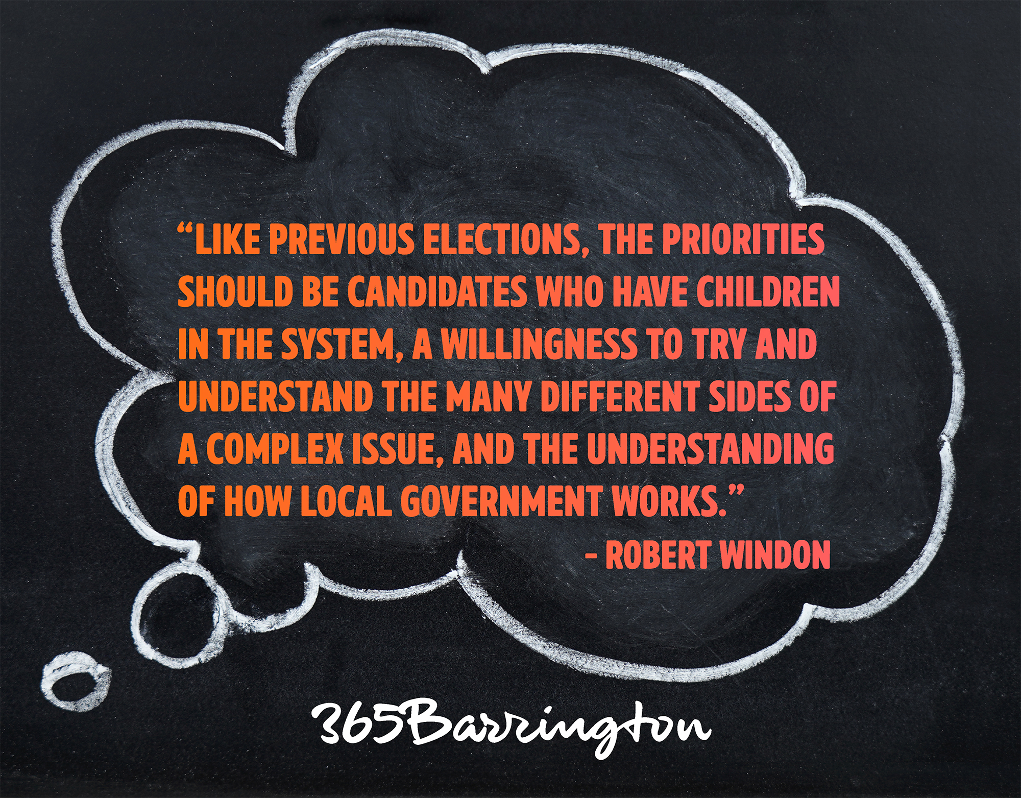 But, as the son and brother-in-law of school teachers, I have always wanted to serve on the school board. After helping other candidates run campaigns in the last couple election cycles and then serving as co-chair of the campaigns to pass the bond referendum last year in Barrington 220, I decided it was time for me to run for school board.