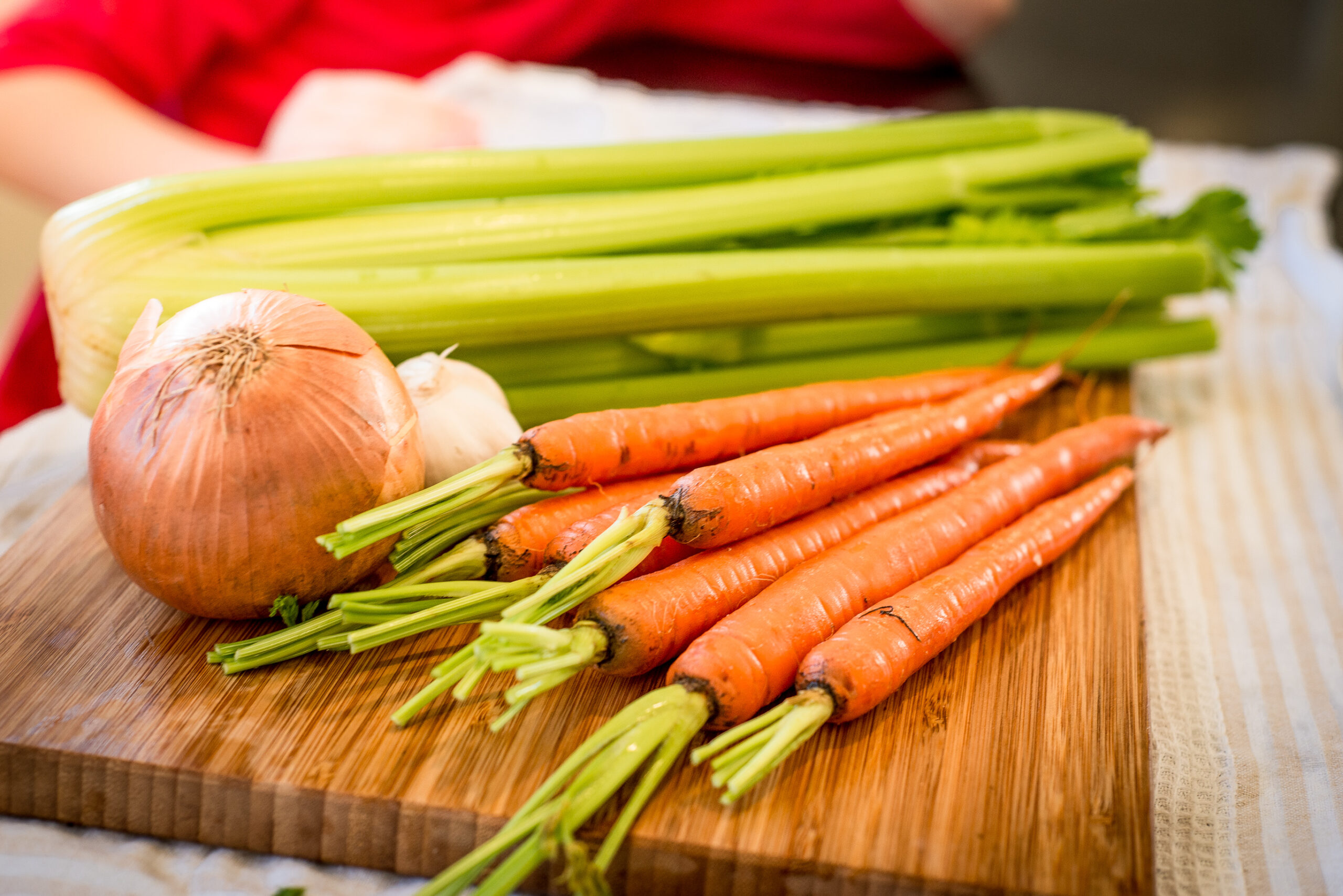 - Heat oil in a large Dutch oven set over medium heat. Add the onion, carrots, celery, and salt and sauté until softened, about 5 minutes. Add the garlic and ginger and sauté another minute longer. Add the broth, turmeric, and lentils.