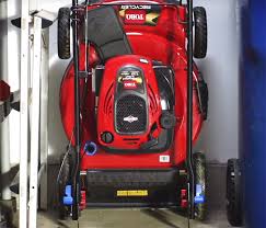 Toro also offers several models featuring SmartStow™ space saving technology, which allows mowers to be stored upright without any leaks or spills – a boon for those of us with garage storage issues! Simply turn a dial and flip the handle.