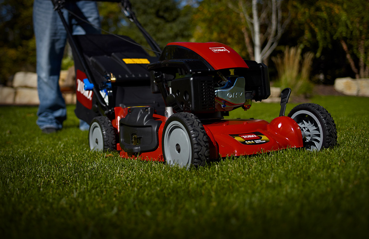You’ll also have to choose the size of your mower, which will depend on the size of your lawn and how fast you’d like to get the job done. While 22-inch decks are the most common, Toro also offers a TimeMaster 30-inch Personal Pace mower that uses a Dual-Force cutting system and Toro Atomic blades cut grass to a super fine mulch. And the Super Recycler ensures that your clippings are mulched very finely, so that they break down quickly and are beneficial to your lawn’s health.